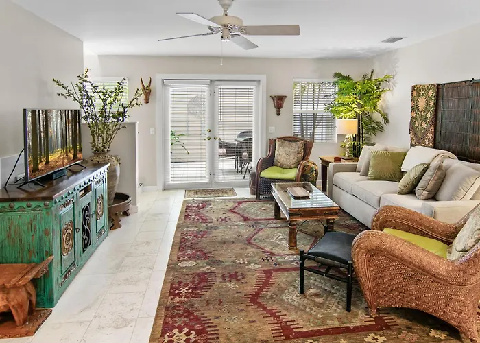 The spacious 3-bedroom Duval Square Retreat Apartment Key West is nestled in the Downtown Key West district of Key West, nearly 15 minutes' walk from the Memorial Sculpture Garden. Guests will enjoy the convenience of private parking available on site.